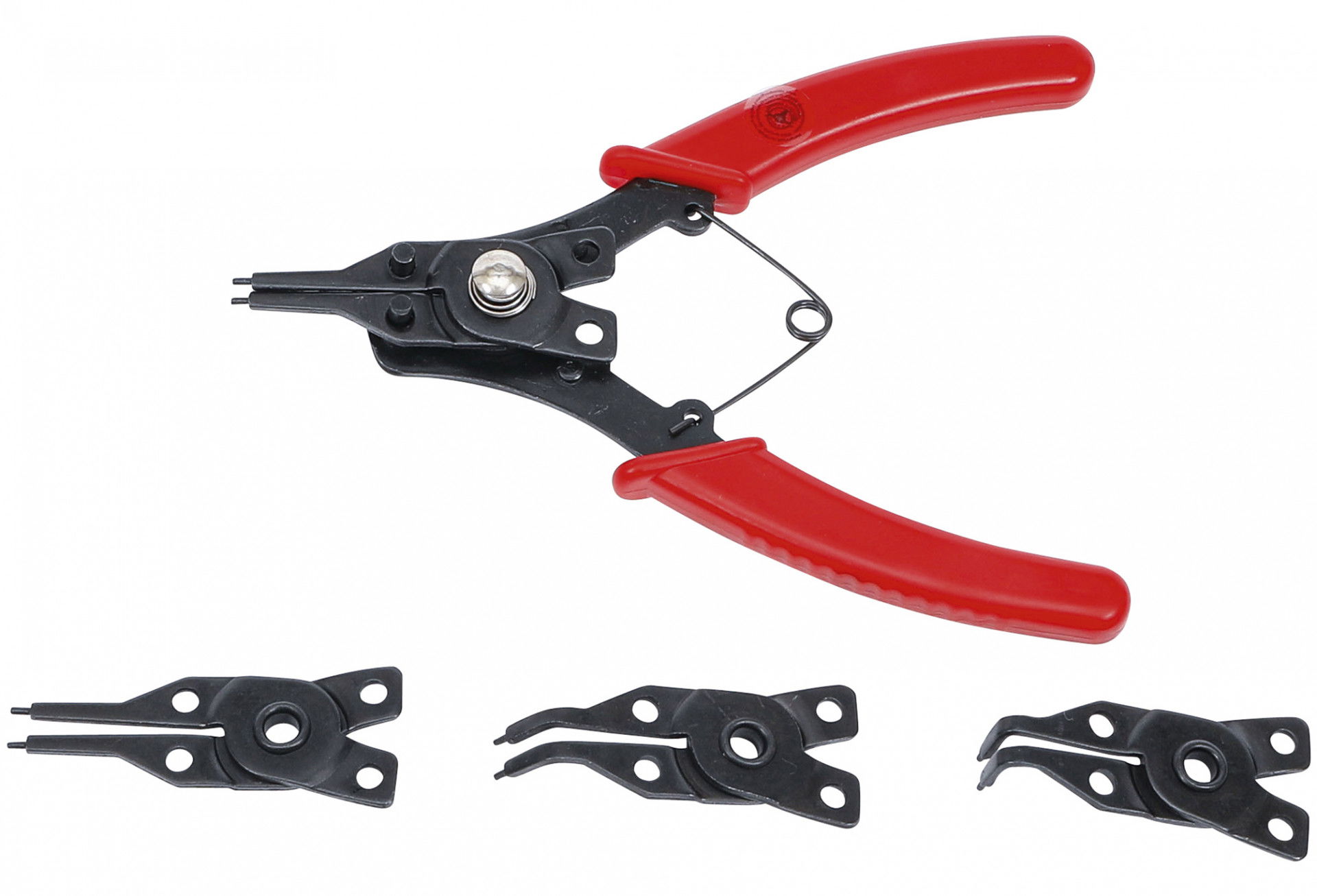 • Speciális seeger fogó, cserélhető fejekkel belső és külső gyűrűkhöz, a könnyed munka érdekében.